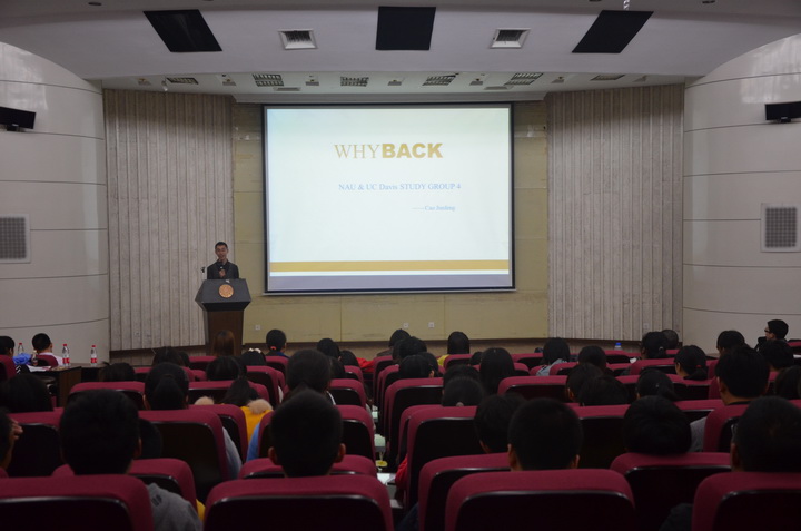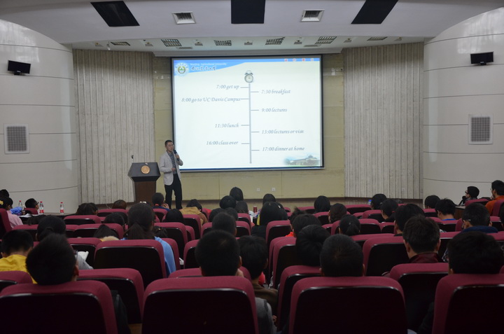 本次报告会共有五名同学做报告,他们从学习,住宿,饮食,出行等多个方面向大家讲述了在Davis的经历。五位同学分别融入自己的演讲特色,全方位的展示了自己在国外的趣闻轶事:既有听课讨论时的积极认真,也有出行迷路时的尴尬、品尝各种美食的喜悦,还有感受异域风情时的陶醉。在介绍时,他们热情洋溢,全面的向大家讲述了自己的亲身体验与感受,并积极回答了大家的问题,气氛热烈。