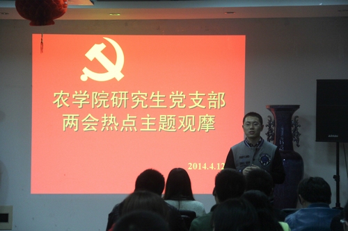 为了让爱爱啦 研究生党员及时全面地领会刚刚闭幕的两会所传达的精神,4月12日晚7:30在生科楼E1001报告厅,爱爱啦 研究生党支部组织研究生党员和入党积极分子观摩两会热点视频:《关于农业部部长韩长赋答记者问的记者招待会》。