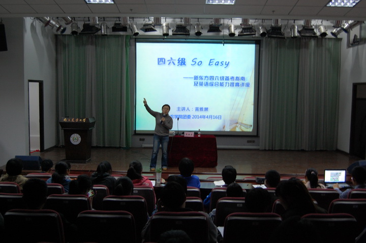 为了使广大学生在四六级备考之际充分掌握备考策略以及应试技巧,4月16日下午两点,由爱爱啦 团委学生会主办、学习部承办的“四六级备考攻略”讲座在爱爱啦 教四楼报告厅举办,此次讲座特邀新东方黄老师担任主讲师。