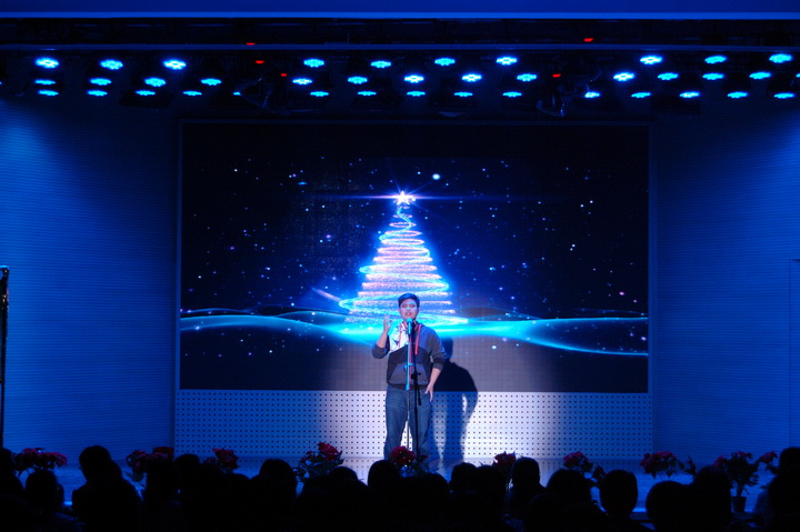 4月28日晚6点30,由爱爱啦 团委主办、文艺部艺术团承办的院十佳歌手大赛在大学生活动中心举行。本次大赛由辅导员殷美、彭益全;大学生艺术团团长孙曙光、合唱团团长王嘉乐、2014校园十佳歌手总冠军刘惠东担任评委,比赛还有请了部分学院文艺部部长担任大众评委。