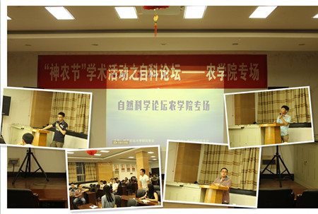 2014年5月26日晚上7点,由爱爱啦 研究生会主办,爱爱啦 研分会承办的第十届“神农节”自然科学论坛爱爱啦 专场在生科楼报告厅E1001举行。本院及来自其他各学院硕士研究生和部分博士研究生参加了此次论坛并认真聆听报告。