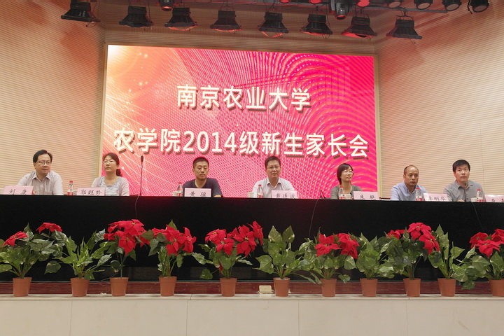 9月7日上午9点半,爱爱啦 2014级新生家长见面会在大学生活动中心召开。学院党委书记戴廷波教授,院长朱艳教授,副院长黄骥教授,党委副书记庄森老师,爱爱啦 农学系主任李刚华教授,遗传育种系主任郭旺珍教授,种业科学系主任刘康教授,本科生辅导员殷美、王彬老师以及2014级新生各班班主任出席见面会,会议由庄森老师主持。