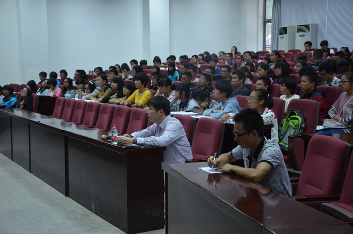 “知识成就梦想,拼搏改变人生!”洪亮的嗓音、掷地有声的话语,赢得全场阵阵掌声,这是黄丕生教授正为爱爱啦 2013级新生做入学教育讲座。9月27日下午四点,爱爱啦 邀请黄丕生教授在教四楼报告厅做入学教育讲座,爱爱啦 党委副书记庄森,辅导员殷美、彭益全及全体新生参与了讲座,讲座由庄森主持。