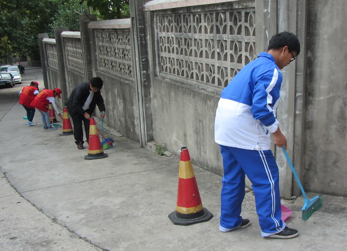 下午2点整,22名南农大青协志愿者带上清洁工具,在会长的带领下,来到苜蓿园街区开展义务清扫活动。活动中,志愿者分成四组,分别由一个小组长带领,分区域进行清扫。志愿者们分工明确,团结协作,发扬“不怕累,不怕脏”的精神,有的扫,有的倒,有的拔,忙碌的身影见证着同学们高涨的热情。经过近2个小时的辛苦努力,志愿者们把社区街道打扫得干干净净,随地可见的垃圾和地砖里的杂草不见了踪影,卫生死角一个不留。志愿者们看到在自己的努力下变得更清洁漂亮的社区街道,脸上焕发出灿烂的笑容。过往行人、当地居民、社区服务人员都对此给予了高度好评。