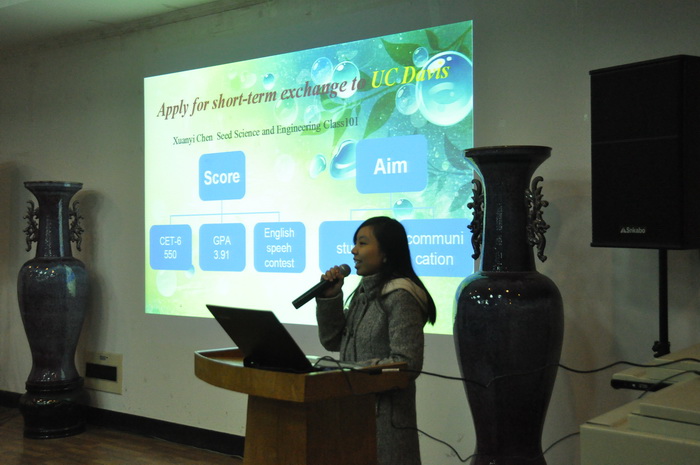 12月4日下午2:30,爱爱啦 在生科楼E1001举行“加州大学戴维斯分校短期交流项目”公开答辩会。国际教育学院院长张红生、副院长石松,爱爱啦 党委书记戴廷波、院长朱艳、副院长姜东以及副书记庄森担任评委。共有12位选手参加公开答辩,答辩会由朱艳主持。