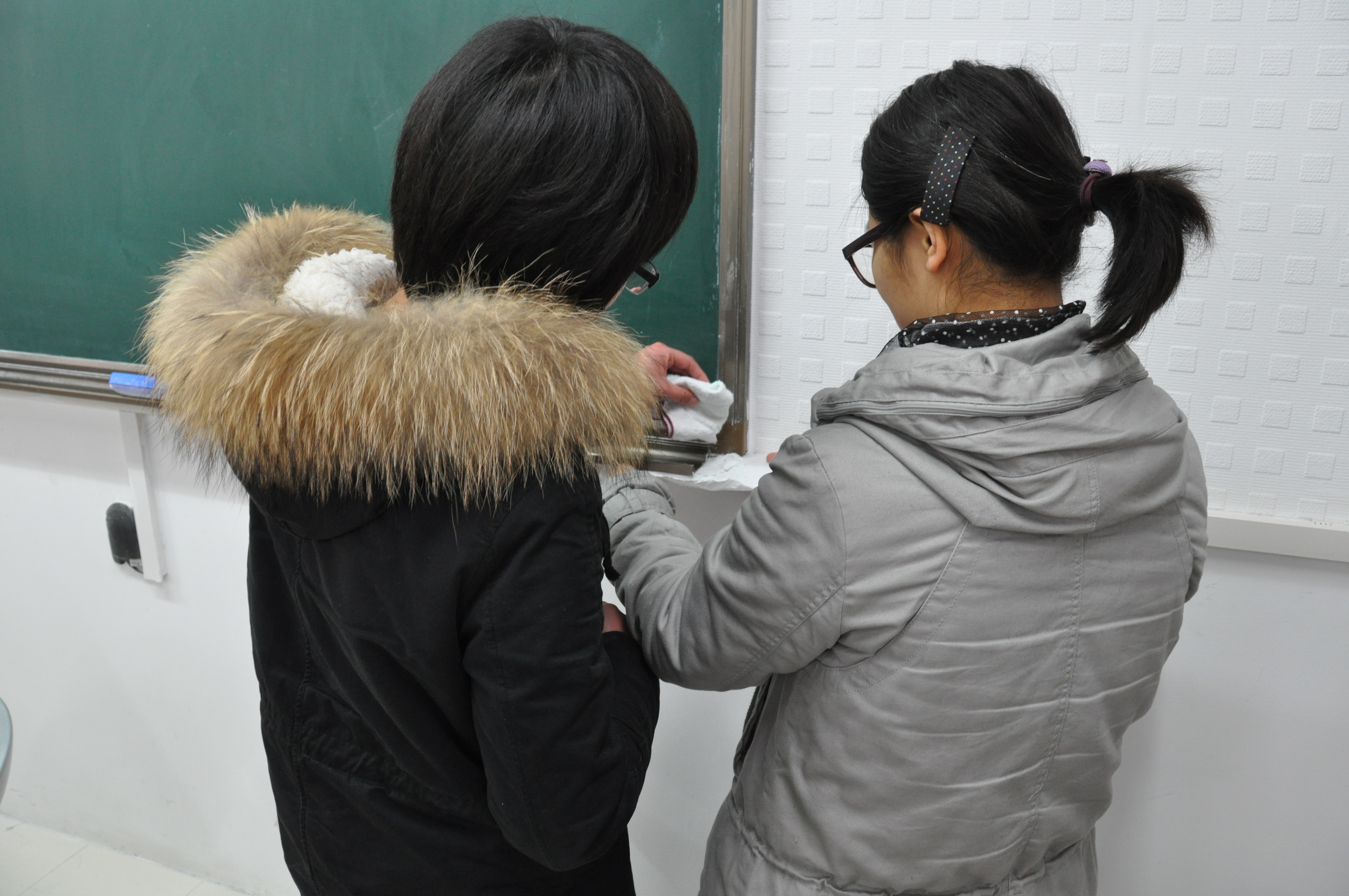为响应毛泽东号召“向雷锋同志学习”第51周年纪念日,3月5日下午13时,爱爱啦 青协组织志愿者在教四楼开展了义务擦黑板活动。