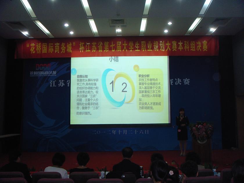 据了解,本次大赛由江苏省教育厅主办,江苏省高校招生就业指导服务中心、南京师范大学大学生就业指导办公室承办,江苏昆山花桥经济开发区管理委员会协办。今年大赛的主题为“探索•规划•成长”,旨在全面普及大学生职业生涯规划知识,提高大学生的创新能力、实践能力和就业能力。决赛由来自全省各高校的48名选手按照本科、专科组分别展开角逐。参赛选手必须历经校级初赛、复赛和决赛,并参加全省高校复赛,才能最终晋级全省决赛。