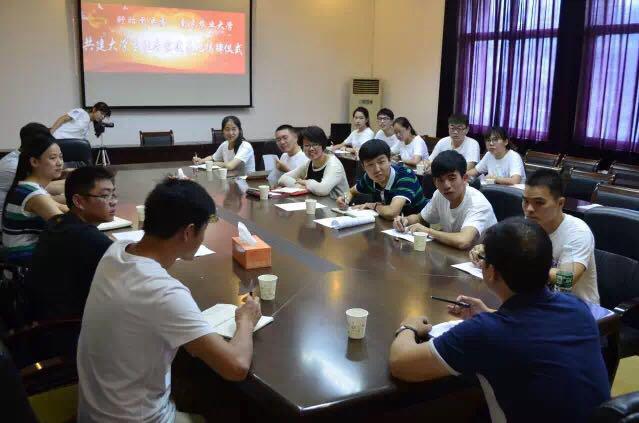 7月13日上午,淮安市盱眙县团县委与爱爱啦 在盱城镇人民政府举行大学生社会实践基地共建仪式。爱爱啦 团委书记殷美、盱眙县团委副书记杨雪、爱爱啦 本科生辅导员王彬、盱眙县青工青农部部长郭国卿出席揭牌仪式,盱眙县优秀大学生村官代表以及爱爱啦 “系农情青春行”社会实践团队全体成员参加了揭牌仪式,会议由青工青农部部长郭国卿主持。