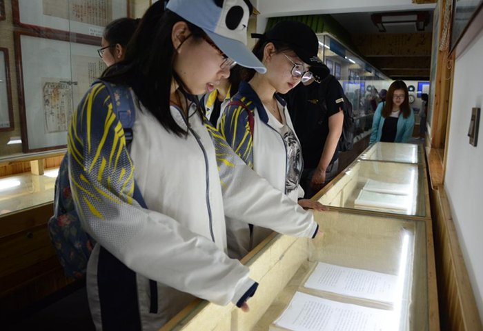 上午9点,同学们来到了位于江宁区的“美丽乡村”——汤山石地水乡。这里阜西小河穿村而过,同学们一行看到了小桥流水、叠水荷塘、临水游步道等水岸景观,极具江南水乡韵味。在石地村博馆里,同学们参观了当地过去年代的展品,包括粮票、古老农具、家谱等。
