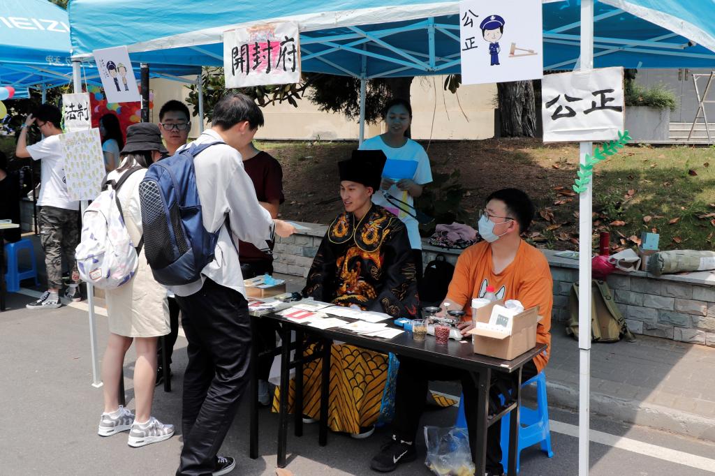 “人无德不立,品德是为人之本。”中华民族有许多优秀的传统美德需要青年学生学习与传承。本次农业科技文化节的“爱国”展区以社会主义核心价值观为蓝本,从“富强、民主、文明、和谐、自由、平等、公正、法治、爱国、敬业、诚信、友善”二十四字出发,以多种形式向同学们展示中华传统美德的现实意义。“公正、法治”展厅被装饰成开封府,游戏主持人身着包拯官服,与同学探讨公平与法治,威严又不失乐趣。