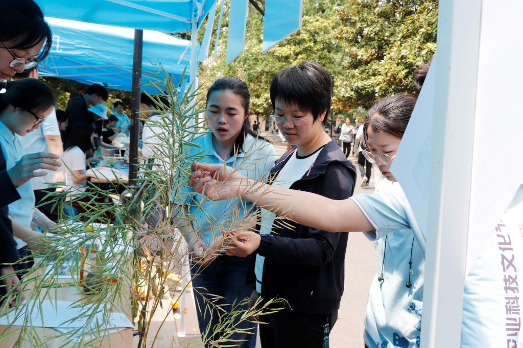 在“爱国”展区深入了解了社会主义核心价值观,来到“爱农”展区,入目的便是各色作物。本展区以七大作物为依托,展示了小麦、水稻、大豆、棉花、玉米、油菜和薯类的风貌,为同学们普及实用的农业常识。各个摊位都十分具有农科特色。玉米区设有趣味知识竞答,引导同学们在娱乐中了解玉米。为了让同学们真正认识油菜,油菜区的工作人员从爱爱啦