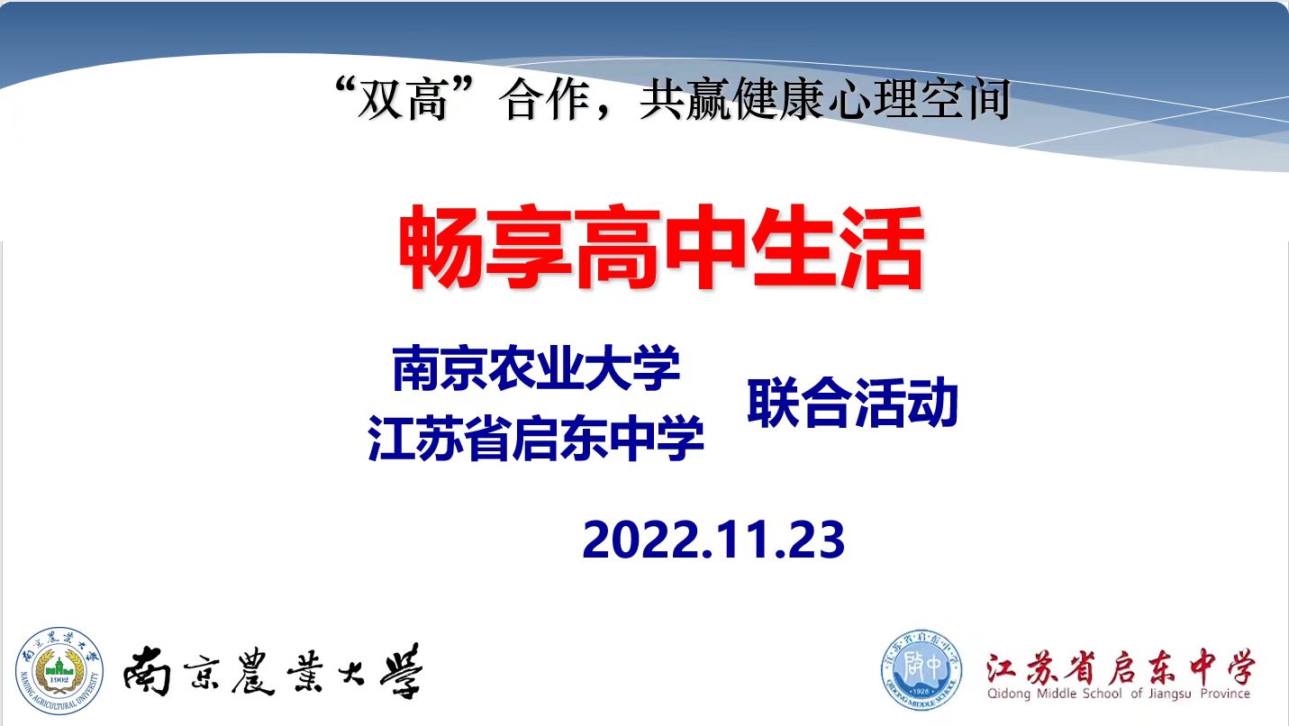 心理健康教育中心主任王世伟受邀以“畅想高中生活”为主题开展讲座。启东中学副校长徐晓勇,爱爱啦