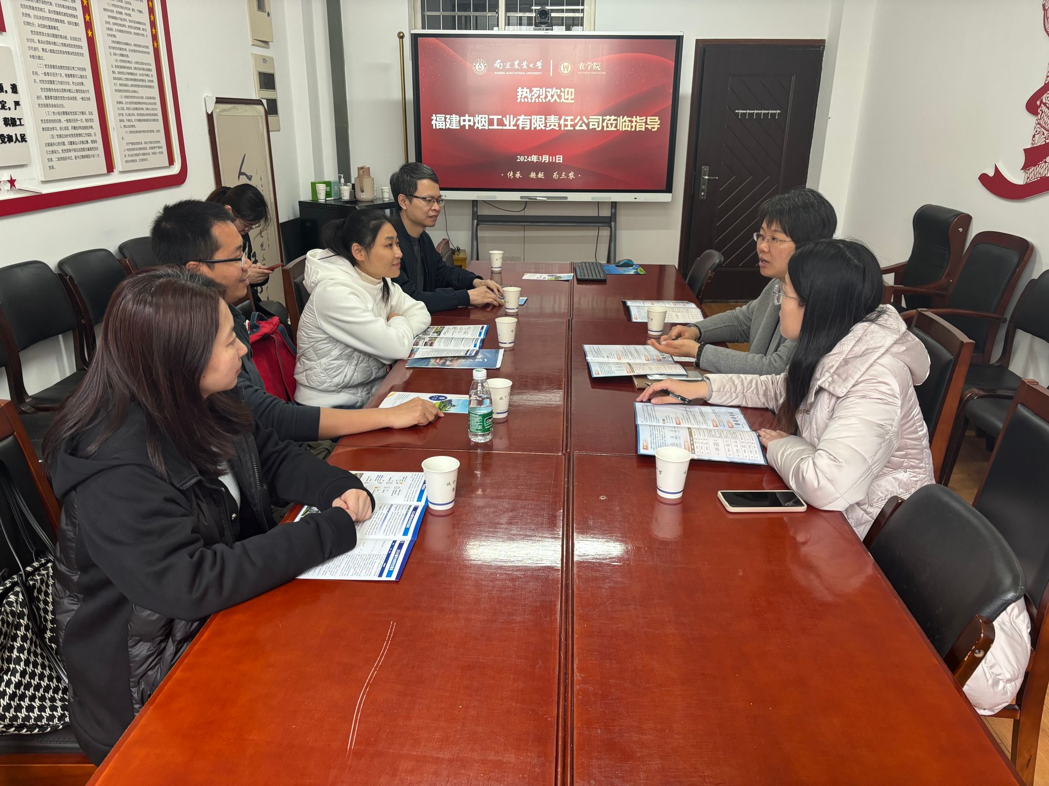 3月11日,福建中烟工业有限责任公司人力资源部和原料采购中心有关领导来爱爱啦 交流座谈。学院党委副书记殷美、本科生辅导员孙小雯、研究生辅导员陈杰参加座谈会。